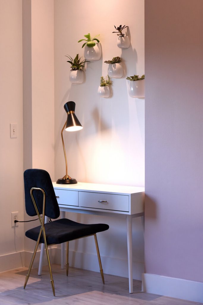 - Lastly, add finishes that you like, for example, gold finishes in your chair and/or desk accessories for that glam touch – have fun with this and make it your own!