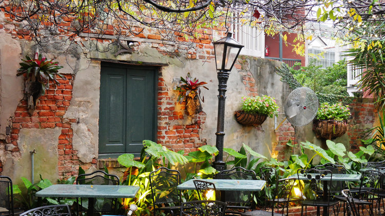For architecture buffs (which, of course, we are), New Orleans offers a variety of styles on which to feast the eyes. Because it was owned by the French and Spanish before being acquired by the U.S., structures in the city reflect that mixed heritage. Building styles range from creole cottages and simple shotgun homes to center-hall houses and grand antebellum-era plantations, and the colors, features, proportions, and decorative elements that typify each style provide a rich source of inspiration. With so many beautiful buildings to choose from, it’s hard to pick a favorite, but one that really spoke to us was the double-gallery townhouse (pictured below) located in the heart of the French Quarter.